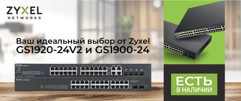 24 портовые коммутаторы Zyxel: GS1920-24V2 и GS1900-24 на складе!
