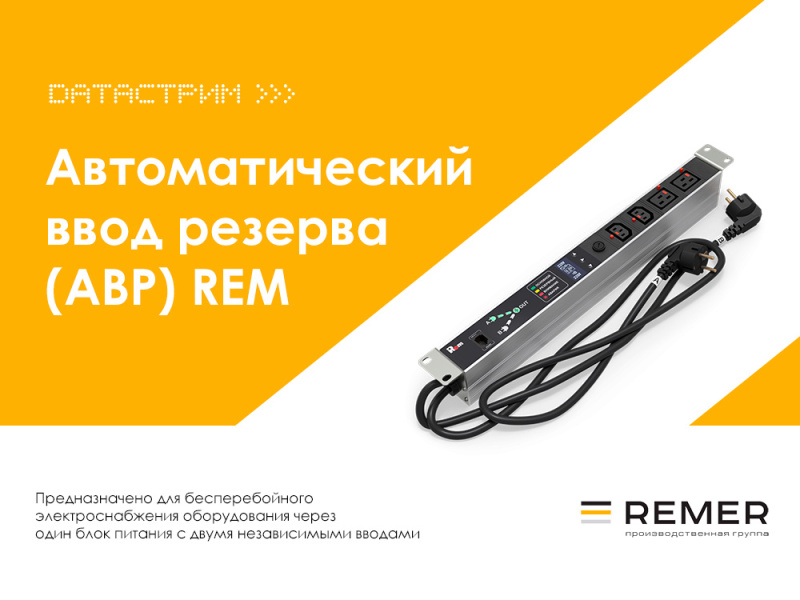 Компания REMER представила новую линейку устройств – PDU с функцией автоматического ввода резерва (АВР), разработанных подразделением «REMER автоматизация», специализирующимся на разработке интеллектуальных устройств.