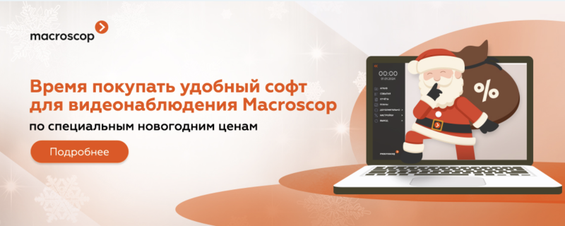 Macroscop запустил новогодние акции на удобный софт для видеонаблюдения. Успевай до 30 декабря 2022 забрать СВОЕ предложение среди 5-ти самых выгодных по цене: