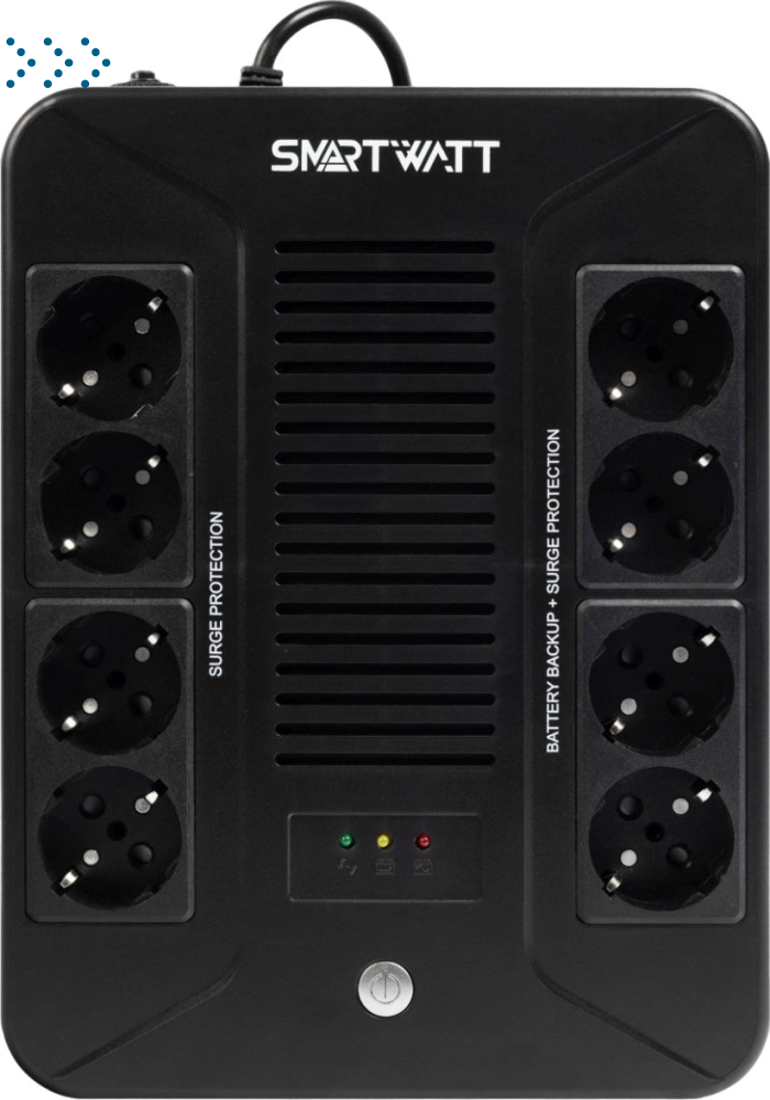 Линейно-интерактивные ИБП SMARTWATT UPS SAFE PRO для офисного и мультимедийного оборудования позволяет резервировать до 4 устройств одновременно.