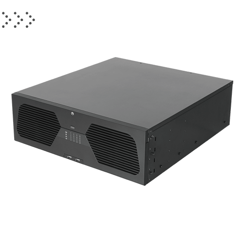 128-ми канальный IP-видеорегистратор H.265+ / H.265 / H.264; поддержка записи до 8 мп, 1 HDMI; Входящий поток 640Мб/с; разрешение записи до 8Мп;  синхр.воспр. 16 каналов@1080р; 16 SATA для HDD до 8Тб;  1 RJ45 100M Ethernet; 2 USB; -10°C...+55°C; DC 12V/2A; 1.7Вт макс (без HDD), 255mm×210×43